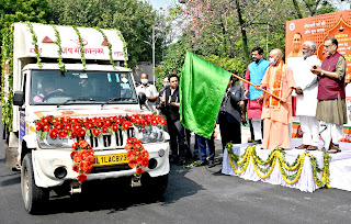 मुख्यमंत्री योगी ने अयोध्या दीपोत्सव में गौमय दीपों को जाने वाले वाहन को हरी झण्डी दिखाकर किया रवाना