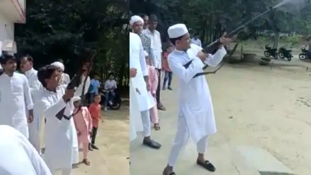 वीडियो प्रतापगढ़ के कंधई इलाके के इब्राहिमपुर गोपालपुर गांव का है। यहां एक व्यक्ति किशोर और युवाओं को राइफल चलाने की ट्रेनिंग दे रहा है। वीडियो में एक घर के सामने खड़े करीब दो दर्जन लोगों में से एक व्यक्ति राइफल का बोल्ट चढ़ाकर किशोरों और युवाओं को बारी-बारी से थमा रहा है। एक-एक करके ये लोग हवा में गोलियां चला रहे हैं। 30 सेकेंड के वीडियो में तीन लोग गोलियां चलाते दिख रहे हैं। इस दौरान विशेष पोशाक पहने एक व्यक्ति को लोग हबीबी कहकर शाबाशी भी दे रहे हैं।