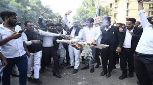 लखनऊ : (मानवीय सोच) हापुड़ में वकीलों पर हुए लाठीचार्ज को लेकर लखनऊ में अधिवक्ताओं ने बड़ा विरोध प्रदर्शन किया है। सोमवार को वकील सड़कों पर निकले और मामले में कार्रवाई की मांग की। बड़ी संख्या में वकील लखनऊ के स्वास्थ्य भवन से परिवर्तन चौराहे की ओर बढ़ रहे हैं और पुलिस प्रशासन के खिलाफ नारेबाजी कर रहे हैं। पुलिस ने बैरीकेडिंग कर उन्हें केडी सिंह स्टेडियम के पास रोक दिया है। इस दौरान कई जगहों पर वकीलों की पुलिसकर्मियों से झड़प भी हुई है।