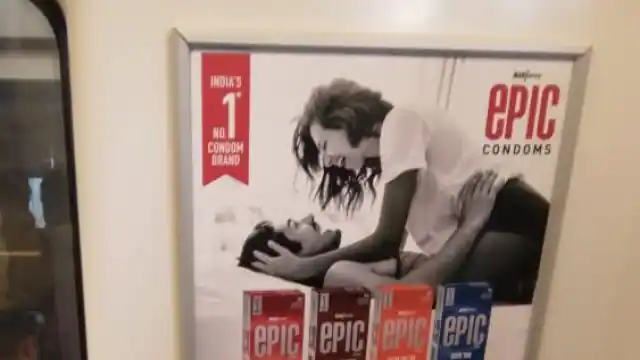 नई दिल्ली (मानवीय सोच) दिल्ली मेट्रो के कोच में विज्ञापन के लिए लगी तस्वीर सोशल मीडिया पर खूब वायरल हो रही है। दरअसल, यह विज्ञापन कंडोम का है और वायरल होने की वजह यह है कि यह बिल्कुल महिलाओं के लिए रिजर्व सीट के ऊपर ही लगी है। इस तस्वीर में एक कपल काफी रोमांटिक अंदाज में दिखाया गया है। ऐसे में सोशल मीडिया पर इसे लेकर बहस छिड़ गई है। कुछ लोग इसे लेकर डीएमआरसी (दिल्ली मेट्रो रेल कॉरपोरेशन) की आलोचना कर रहे हैं तो कुछ इसे सही बता रहे हैं।