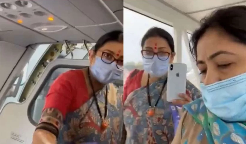 एयरपोर्ट पर महिला यात्री ने स्मृति ईरानी से महंगाई पर पूछा सवाल