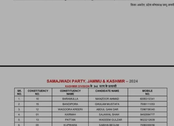 जम्मू-कश्मीर विधानसभा चुनाव : सपा ने जारी की 20 उम्मीदवारों की लिस्ट