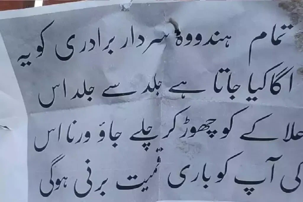 # कश्मीर में हिंदुओं और सिखों के घरों पर चिपकाए गए धमकी भरे पोस्टर
