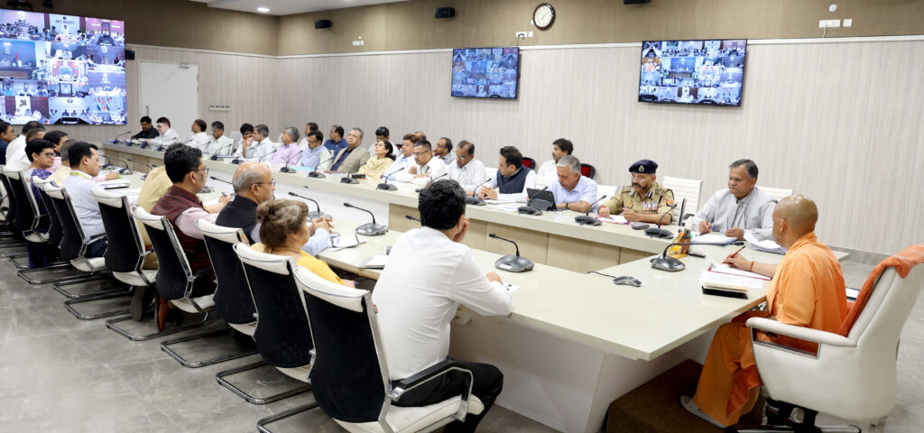 मुख्यमंत्री योगी आदित्यनाथ जी ने आज यहां अपने सरकारी आवास पर आहूत एक उच्चस्तरीय बैठक में वीडियो कॉन्फ्रेंसिंग के माध्यम से आगामी पर्व एवं त्योहारों के शांतिपूर्ण आयोजन के सम्बन्ध में तथा प्रदेश सरकार के 08 वर्ष पूर्ण होने के अवसर पर सभी जनपदों में 03 दिवसीय ’जनपदीय विकास उत्सव’ आयोजित किए जाने के सम्बन्ध