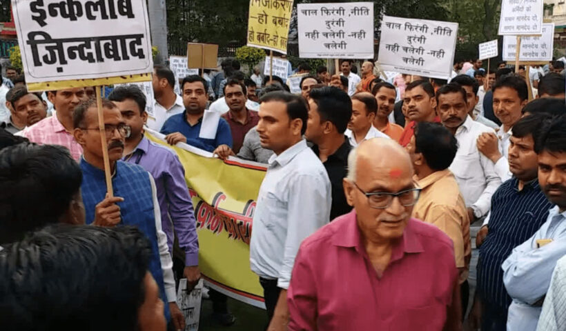 हाईकोर्ट के फैसले से नाराज सहायक शिक्षक अभ्यर्थी बड़ी संख्या में लखनऊ पहुंचे