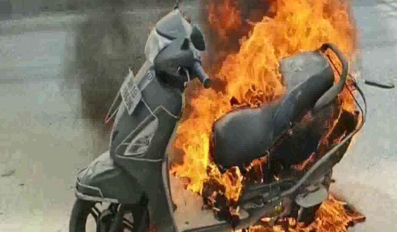 कृष्णानगर क्षेत्र के वीआईपी रोड पर धूं-धूं कर जलने लगी स्कूटी