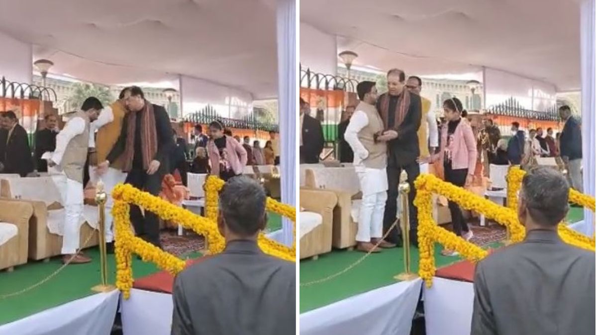 लखनऊ (मानवीय सोच) गणतंत्र दिवस पर विधानभवन के सामने निकली परेड का एक वीडियो वायरल हुआ है। इसमें हज कमेटी के चेयरमैन व पूर्व मंत्री मोहसिन रजा उप मुख्यमंत्री ब्रजेश पाठक के बगल में बैठने के लिए पहले से मंच पर मौजूद अल्पसंख्यक कल्याण राज्यमंत्री दानिश अंसारी को हटाकर बैठते दिख रहे हैं