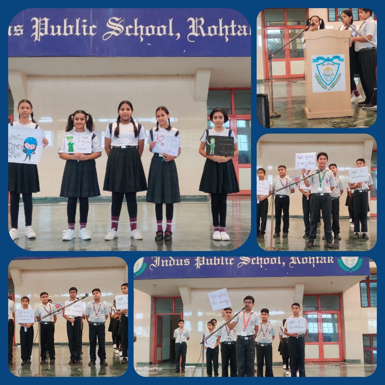 रोहतक (मानवीय सोच) मंगलवार को इंडस पब्लिक स्कूल, रोहतक में बालिका दिवस बड़े जोश-खरोश से मनाया गया। इस दिवस को मनाने का उद्देश्य समाज में लड़कियों को शिक्षित करना व उनको अधिकारों के प्रति जागरूक करना है। विश्व की अद्वितीय चुनौतियों को जिनका वह मुकाबला व सामना करती हैं। उन्हें मान्यता देने के लिए 11 अक्टूबर को अन्तरराष्ट्रीय बालिका दिवस मनाया जाता है। इस उपलक्ष्य में आज छठी-ब के छात्र-छात्राओं ने विशेष सभा का आयोजन किया। सबसे पहले सात्विक, पारूल व काव्या ने समाज में बालिकाओं के स्थान के बारे में अपने-अपने विचार बताए। इसके पश्चात आरूषि व अनिष्का ने अपनी सुन्दर-सुन्दर कविताएं सुनाई। राघव व समर ने नारी शक्ति व उन्हें सशक्त बनाने के लिए भाषण दिए। छठी-ब के प्रत्येक विद्यार्थी ने तख्तियाँ बनाकर बालिकाओं की समाज में फैली कुरीतियों के बारे में संक्षेप में बताया। जैसे कि कम उम्र में शादी कर देना, शिक्षा से वंचित रखना, भ्रूण हत्या इत्यादि। अंत में, बालिकाओं ने ‘दिल है छोटा सा – छोटी सी आशा’ पर एक मनमोहक नृत्य प्रस्तुत किया जिसमें लड़कियों ने शिक्षा के अधिकार पर भी एक संदेश दिया। सभी विद्यार्थियों की प्रस्तुति बहुत ही उत्तम थी।विद्यालय की चेयरपर्सन डॉ. एकता सिंधु ने अपने संदेश में कहा कि अगर हमें समाज को उन्नत करना है, बालिकाओं को समाज में एक उचित स्थान देना है। विद्यालय के प्रधानाचार्य श्री इंद्रनील गुप्ता जी ने कहा कि हमें लड़कियों की उन्नति के लिए सभी अधिकार देने चाहिए।